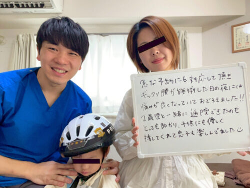 偶然にもギックリ腰をしてしまった翌日にチラシが入り、藁にもすがる思いで連絡しました。
